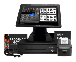 Cuando el espacio detrás del mostrador de tu tienda es limitado cada centímetro cuenta. Por eso en clienty hemos creado un terminal con pantalla táctil integrado en la misma registradora que también integra la impresora de recibos. Y todo ello con unas dimensiones reducidas para adaptare a un comercio o cualquier establecimiento pequeño.